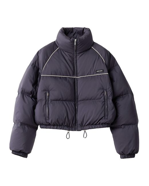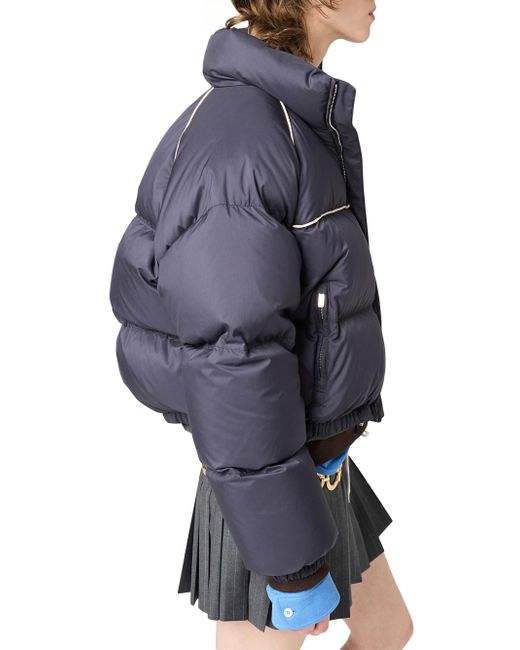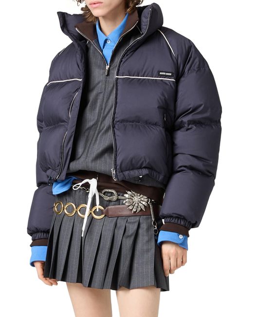 Oversized fit Goose down padding Stand-up collar Raglan sleeves Elasticized cuffs Zipper closure Zipper pockets Elasticized drawstring hem Knit logo patch Imported 100% Recycled polyester. Lsd Handbags - Miu Miu > Miu Miu > Saks Fifth Avenue. Miu Miu. Color: Blue. Size: 6.