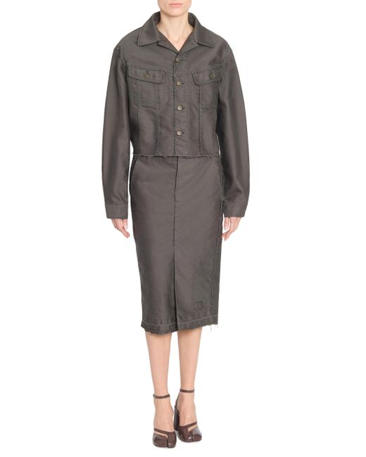 Made in Italy, Maison Margiela's coated denim jacket is crafted of cotton featuring flat seams and a raw-edge hem. Point collar Long sleeves Button front closure 100% cotton Dry clean Made in Italy SIZE & FIT Model measurements: 5'10" tall Model is wearing a US size Small. Advanced Designer - Designer Collections > Maison Margiela > Saks Fifth Avenue. Maison Margiela. Color: Carbon. Size: 4.