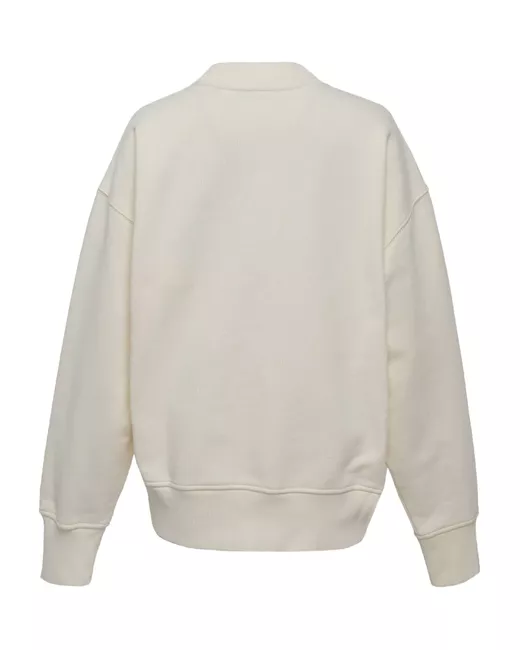 light beige kitten motif crew neck long sleeves ribbed cuffs and hem