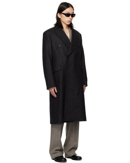 Virgin wool-blend melton coat. · Water-repellent · Peaked lapel · Double-breasted button closure · Flap pockets at waist · Buttoned surgeon's cuffs · Central vent at back hem · Welt pocket at interior · Full satin lining Supplier color: Granite water repellent melton