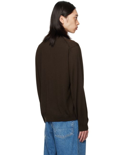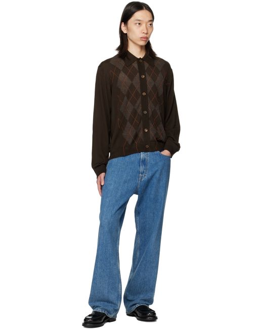 Knit wool polo. · Rib-knit spread collar, hem, and cuffs · Button closure · Intarsia arygle pattern with loose thread detailing at front · Mother-of-pearl hardware Supplier color: Pub argyle fine wool