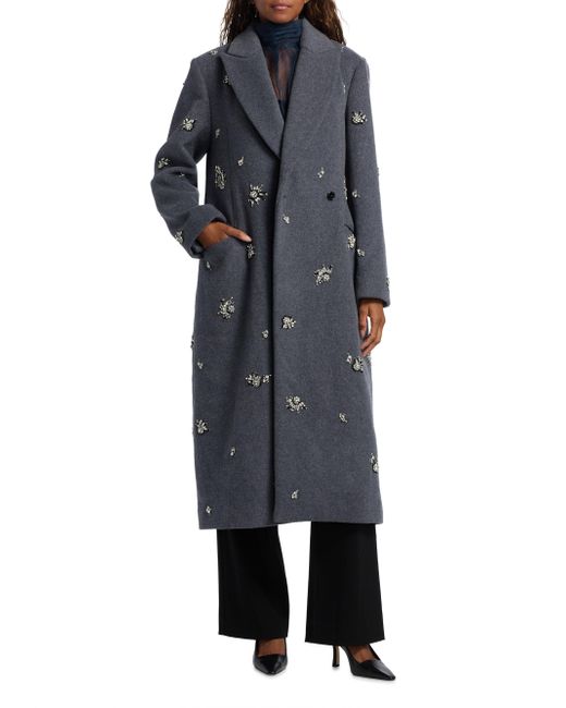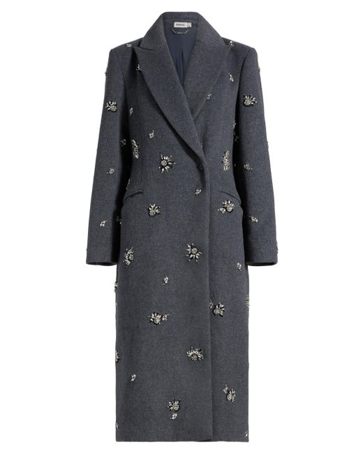 This Gianni coat from SIMKHAI is cut in a longline, double-breasted silhouette with peak lapels and side welt pockets. Sparkling beaded embellishments complete this eye-catching design. Peak lapels Long sleeves Side welt pockets Back vent Button-front closure 50% wool/50% polyester Lining: 55% polyester/45% viscose Dry clean Imported SIZE & FIT About 50" from shoulder to hem Model measurements: 5'10" tall Model is wearing a US size Small. Contemporary Sportswear - Workshop > Simkhai > Saks Fifth Avenue. SIMKHAI. Color: Heather Grey. Size: Large.