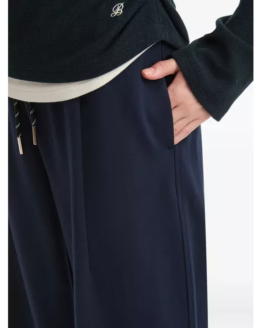 navy blue wide leg elasticated drawstring fastening side slit pockets