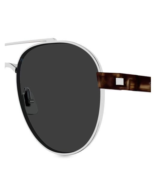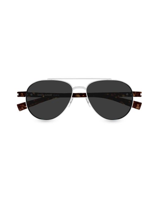 Made in Japan, these Saint Laurent aviator sunglasses are designed with UV-protected solid lenses. 100% UV protection Solid lenses Adjustable nose pads Includes case and cleaning cloth Acetate Made in Japan SIZE 54mm lens width 15mm bridge width 145mm temple length Please note: Lens replacement is optional. Soft Accessories - Men Sunglasses > Saint Laurent > Saks Fifth Avenue. Saint Laurent. Color: Silver Black.