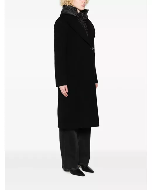 black hooded detachable quilted liner hook fastening welt pockets long sleeves