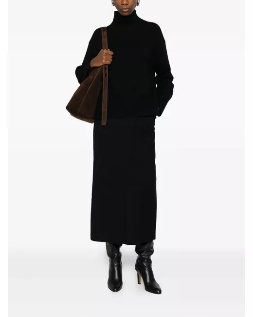 black wrap-around style tie fastening midi length straight hem A-line shape