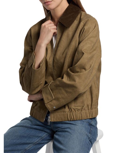 This York jacket from Rails is crafted of cotton and features a contrast corduroy spread collar. Side vertical welt pockets, an elasticized hem, and a front two-way zip closure lend thoughtful comfort to this style. Spread collar Long sleeves, strap cuffs Side vertical welt pockets Elasticized hem Front zip closure 100% cotton Dry clean Imported SIZE & FIT About 24.5" from shoulder to hem Model measurements: 5'10" tall Model is wearing a US size Small. Contemporary Sportswear - Casual Separates > Rails > Saks Fifth Avenue. Rails. Color: Yellowstone. Size: Small.