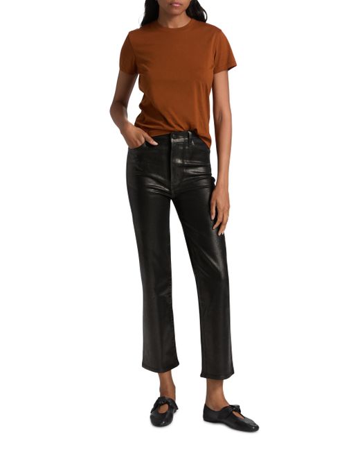 Frame's Le Sleek pants are crafted of faux leather and feature a classic five-pocket style. This piece is cut in a straight silhouette. Five-pocket style Zip fly, button closure 70% cotton//17% polyester/11% modal/2% elastane Dry clean Imported SIZE & FIT Rise: about 11.75" Inseam: about 28" Leg opening: about 15.75" Model measurements: 5'10" tall Model is wearing US size 4 ABOUT THE BRAND In 2012, Erik Torstensson and Jens Grede combined their California-modern point of view with a European sensibility to establish Frame. The ready-to-wear label, first known for its denim, has expanded to leather, cashmere and tailoring-all with an effortless ethos at the core. Focusing on quality fabrics and foundational dressing, the brand delivers chic everyday staples favored by Hollywood starlets and beyond. Contemporary Sportswear - Denim And Bottoms > Frame > Saks Fifth Avenue. Frame. Color: Mood Ring Coated. Size: 26.