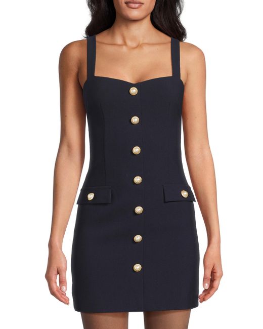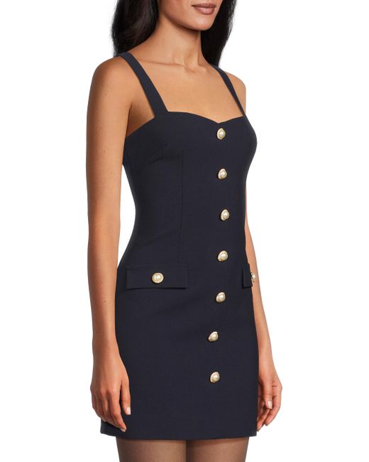 Cut for a tailored fit with princess seams, the Brooks minidress from Likely is adorned with decorative pearlized buttons. Mock flap pockets finish the design. Sweetheart neckline Fixed straps Back zip closure 94% rayon/6% spandex Dry clean Imported SIZE & FIT Model measurements: 5'10" tall Model is wearing a US size 4. Dress Collections - Contemporary Evening > Likely > Saks Fifth Avenue. Likely. Color: Navy. Size: 0.