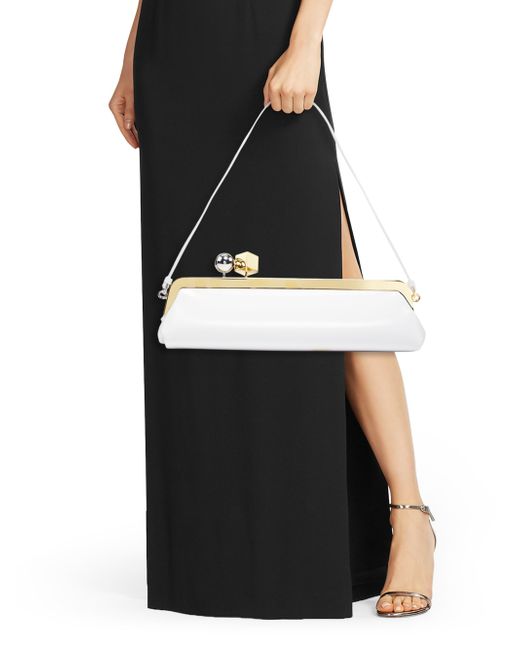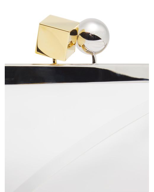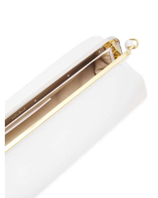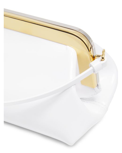 The La Pochette Salon shoulder bag from Jacquemus is crafted of leather and styled with a sculptural metal clasp. Shoulder strap Clasp closure Leather Lining: canvas Made in Italy SIZE About 4.25"W x 14.25"H x 4.25"D. Handbags - Advanced Designer Handba > Jacquemus > Saks Fifth Avenue. Jacquemus. Color: White.