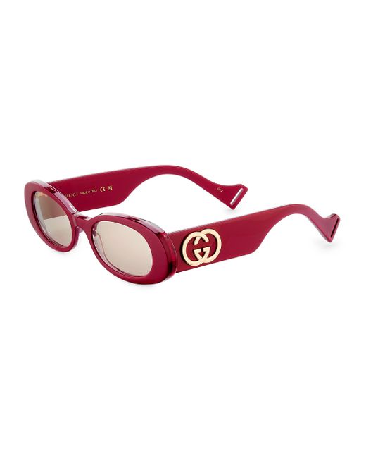 From the Fluo Collection. These Gucci sunglasses feature an oval silhouette with a prominent Interlocking GG logo and oblique stripes on the temples. Made with recycled acetate 100% UV protection Flash lenses Includes case and cleaning cloth Recycled acetate, exclusive of trim Made in Italy SIZE 52mm lens width 20mm bridge width 145mm temple length Please note: Lens replacement is optional. Soft Accessories - Sunglasses > Gucci > Saks Fifth Avenue. Gucci. Color: Burgundy.