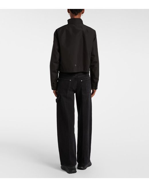 Material: 100% polyester. Care instructions: machine wash at 30 degrees. Made in Romania. Designer color name: Black. Item color: black. Lining: 100% polyamide. Filling: 90% down, 10% feathers. Contains non-textile parts of animal origin. Closure: snap-buttoned front. Pockets: welt pockets. Cuff: buttoned. Adjustable tabs at the waist. Fully lined.