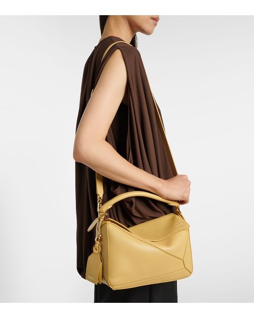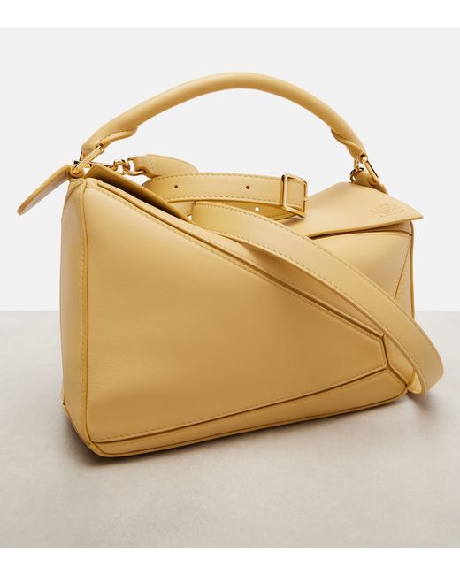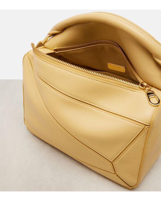 Material: lamb leather. Lining: leather. Made in Spain. Designer color name: Dark Butter. Item color: yellow. Zipped front pocket. Internal details: internal slot pocket. Closure: zipped top. Top handle, Detachable, adjustable shoulder strap. Protective feet. Includes: dust bag.