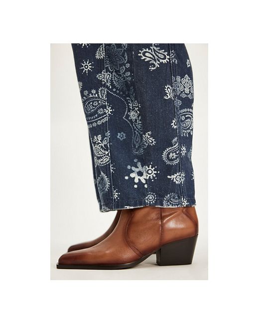 Take a walk on the wild side in these animal-printed, western-inspired ankle boots. **Features:** Ankle length, pull-on style, leather uppers, pointed toe, Western-style stitching, dipped toplines, pull straps, block heel **Why We Cat Nap Cowboy Boots by Free People in Saddle Leather, Size: US 7