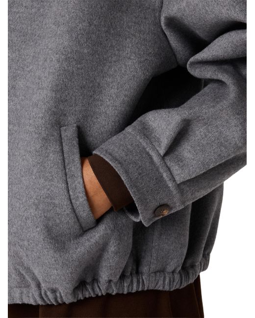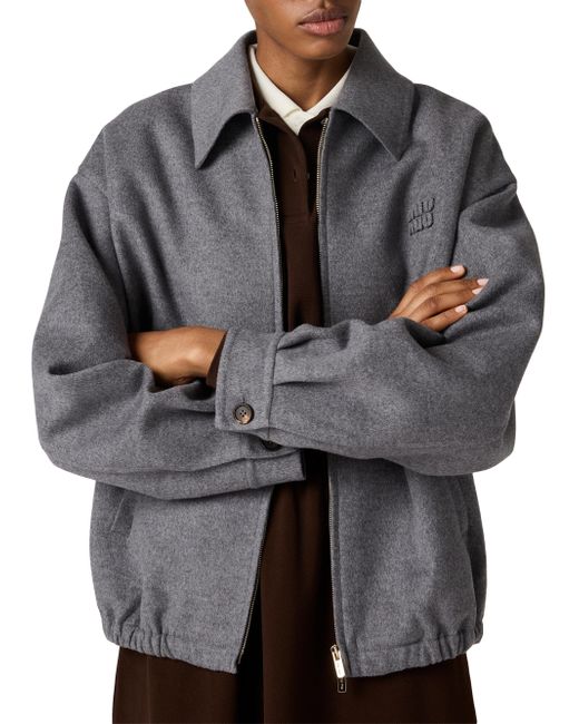 Unlined garment Shirt-style collar Long sleeves Buttoned cuff Zipper closure Welt pockets Embroidered logo Imported 10% Cashmere, 90% Fleece wool. Lsd Handbags - Miu Miu > Miu Miu > Saks Fifth Avenue. Miu Miu. Color: Grey. Size: 4.