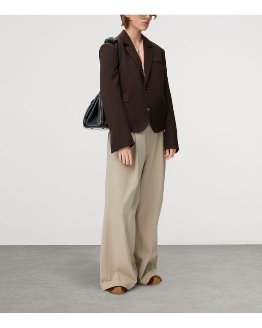 For loewe's collection of knitwear, it often updates traditional styles - here, the classic cable-knit wool sweater - with something a little extra special. Look closely at the button that clasps the neckline to form a keyhole cut-out and you'll see the brand's famed Anagram motif, a subtle but potent symbol of quality.