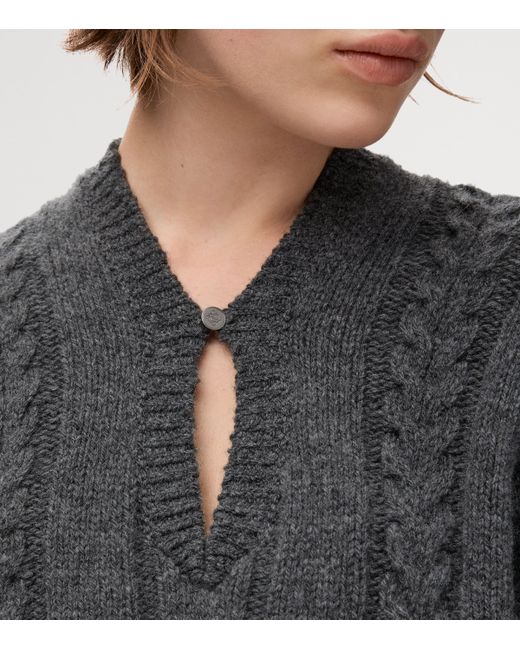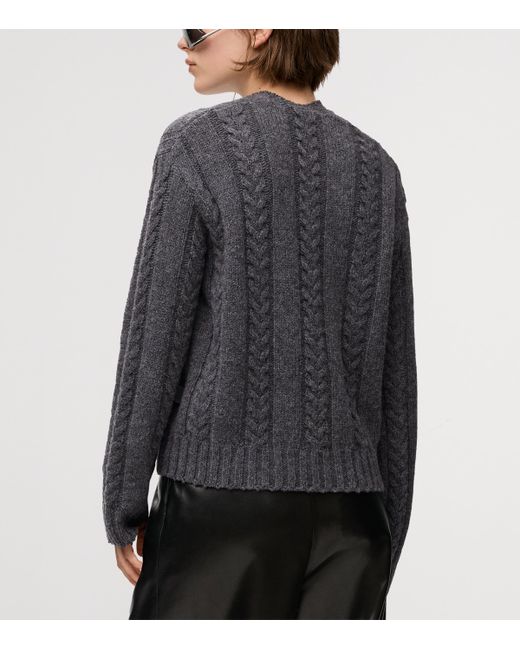 Women's Gray Wool Cable-Knit Sweater