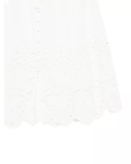 white front button fastening V-neck long sleeves scallop hem