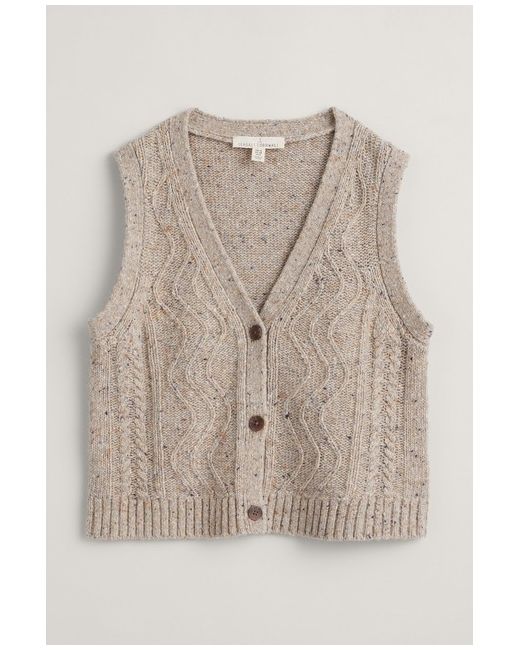 Pendouer Knitted V-Neck Sweater Vest. A button-through knitted vest made with a responsibly sourced wool blend, with a deep V-neck that's perfect for layering. A versatile piece you can wear over jersey and under jackets to add warmth and texture to your favourite winter outfits.