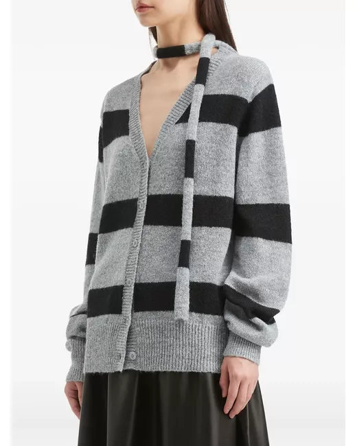 grey black stripes V-neck button fastening scarf neck long sleeves