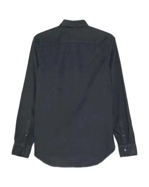 dark grey button fastening point collar long sleeves buttoned cuffs