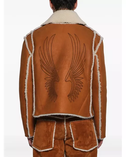 Men's Brown shearling eagle-print jacket