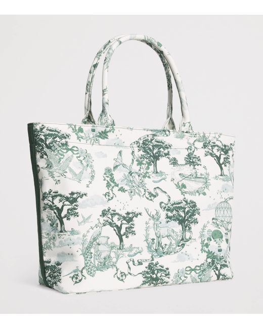 The Toile tote bag from Harrods features a romantic print inspired by the 18th-century French fabric toile de Jouy. The ideal accessory for navigating the city during shopping and exploration days, it offers a spacious interior to keep everything from money essentials to small tech items safe.