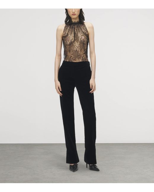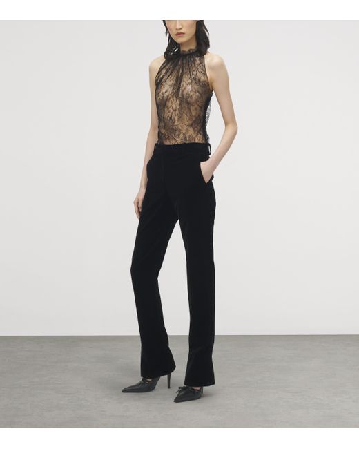 McQueen is a London label best known for its avant-garde designs that push the boundaries of fashion. Defined by a darkly romantic aesthetic, this sleeveless top is crafted from black lace and features gathering at the neckline, showcasing the label's sartorial expertise.