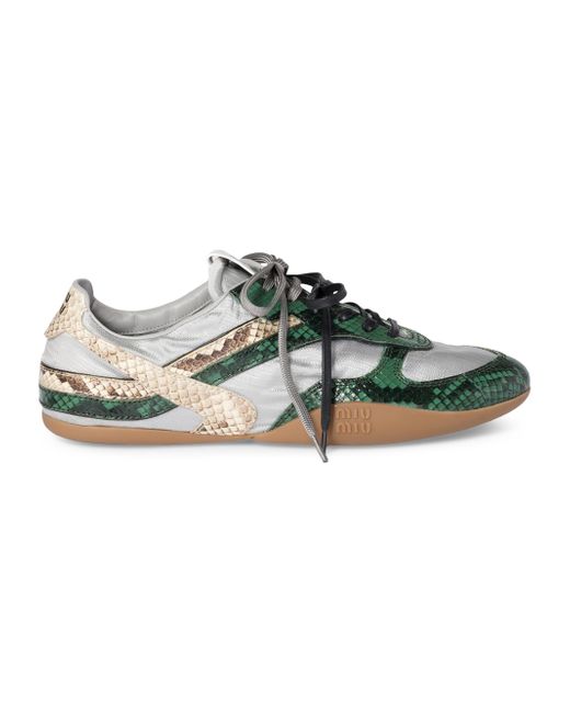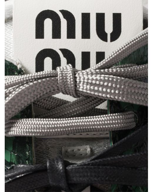 Upper with leather inserts Fabric lining Laces closure Rubber sole with logo Removable fabric-covered insole Screen-printed logo on the tongue, heel and insole Imported 100% Recycled Polyamide. Lsd Handbags - Miu Miu > Miu Miu > Saks Fifth Avenue. Miu Miu. Color: Grey Blue Pink. Size: 8.