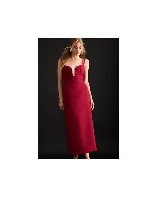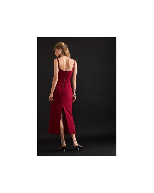 By Bardot 60% Polyester, 35% Viscose, 5% Elastane Back zip Plunge neck with diamante trim Kick split Hand wash Imported Brooklyn Midi Dress by Bardot in Red, Women's Size: Uk 6, Polyester/Viscose/Elastane at Anthropologie