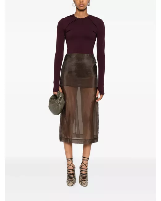 red back keyhole neckline draped neckline long sleeves snap fastening Just a reminder that this piece must be tried on over your own garments.