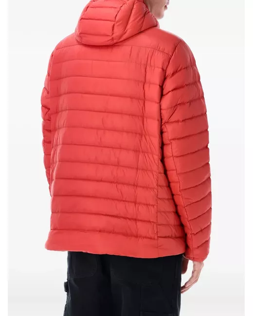 red horizontal quilting front zip fastening classic hood side welt pockets