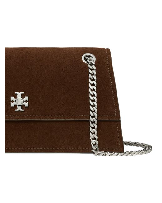 Tory Burch's Kira shoulder bag is crafted of suede and designed with a chunky curb chain strap. Chain shoulder strap Interior: two slip pockets Flap with turn-lock closure Suede Lining: cotton Trim: leather Imported SIZE About 11"W x 5.75"H x 3.25"D Chain crossbody strap: about 21.75" drop ABOUT THE BRAND Since debuting her brand in 2004, New York-based designer Tory Burch has made an impact on the fashion world with her handbags and shoes, and playful-yet-polished clothing. Today, Burch remains inspired by color and travel, with her vibrant collections bursting with prints, and her instantly recognizable double-T logo drawing from Moroccan architecture. Handbags - Tory Burch Handbags > Tory Burch > Saks Fifth Avenue. Tory Burch. Color: Dark Cocoa.