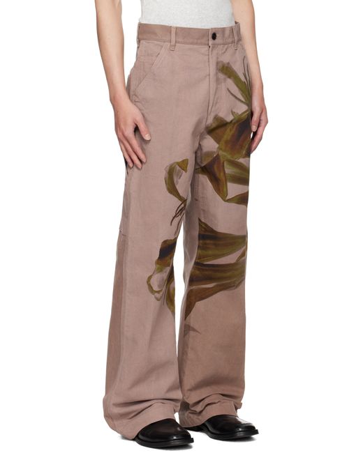 Cotton canvas trousers. · Graphic printed throughout · Belt loops · Five-pocket styling · Button fly · Creased legs · Patch pockets at back Supplier color: Old rose