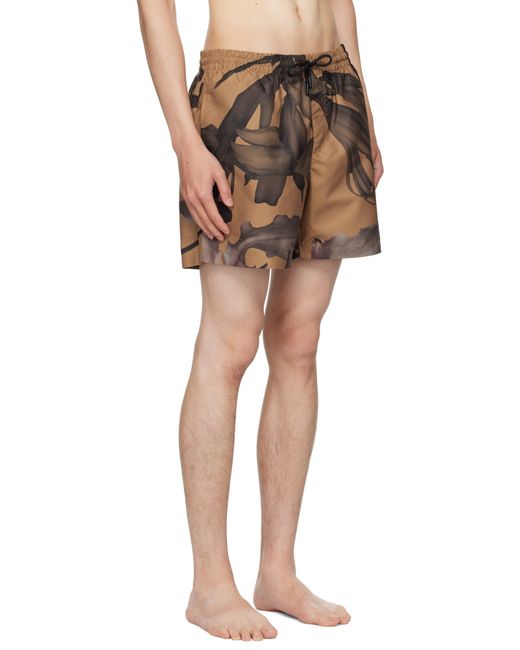 Packable nylon twill swim shorts. · Graphic pattern printed throughout · Drawstring at elasticized waistband · Two-pocket styling · Mock fly · Includes storage pouch · Briefs-style mesh lining Supplier color: Ocra