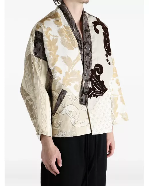 beige damask pattern floral pattern open front patchwork design
