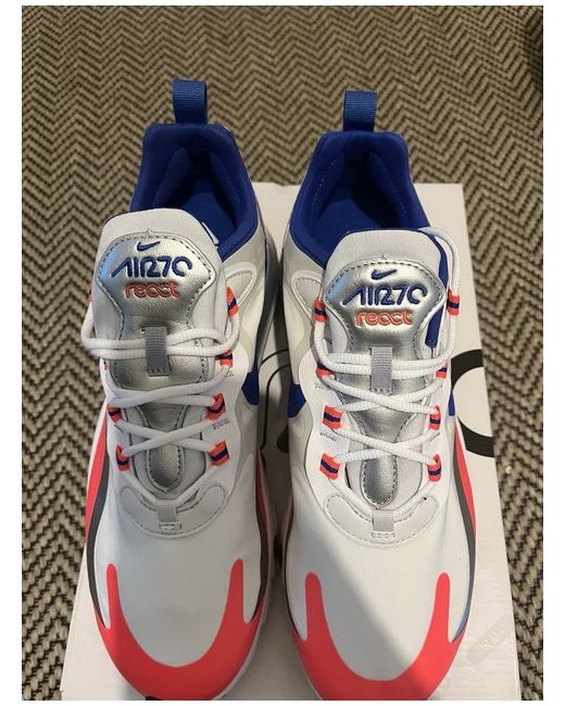 The W Air Max 270 React in UK shoe size 7.5 is a stylish and comfortable trainer designed for casual occasions. It features a lace-up closure, synthetic lining, and maximum cushioning level with Nike Air Max cushioning technology. The mixed fabric type includes a synthetic upper material and a foam insole for added comfort. This multicoloured sneaker is ideal for various activities like gym training, cross-training, lifestyle, CrossFit, and running. Made by Nike, it is part of the popular Nike Air Max 270 product line, offering both style and performance in one sleek design.