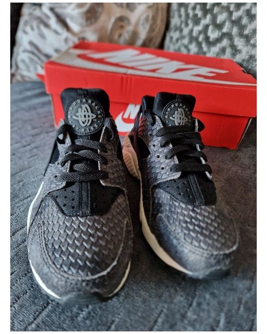 These are a pair of brand new Nike Air Huarache Run trainers in a UK size 3.5 for women. The black sneakers feature the iconic Nike Huarache product line and are designed as a stylish and comfortable option for everyday wear. The trainers combine a sleek design with the renowned Nike technology, making them a popular choice for those looking for both fashion and functionality in their footwear.