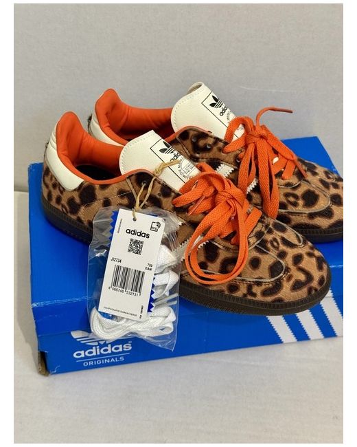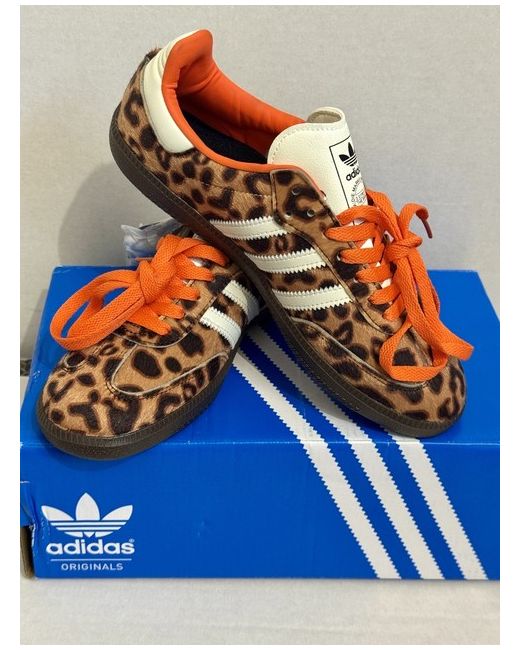 The Adidas Samba trainers in red leopard print, size UK5, are a stylish and trendy choice for women. With the iconic Adidas brand and sleek sneaker style, these trainers are perfect for adding a bold pop of colour to any outfit. The red leopard print adds a touch of fun and flair, making these shoes a fashionable and comfortable option for everyday wear.