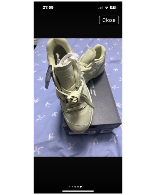 The New Balance trainers are stylish lace-up sneakers in a comfortable rubber outsole, perfect for casual wear in the summer season. These green trainers feature a logo accent and are designed for women with a UK shoe size of 4. Made with leather uppers and a foam insole, they provide a standard shoe width and are ideal for running and jogging activities. The low-top shoe shaft style and fabric lining ensure a secure and comfortable fit for everyday wear.