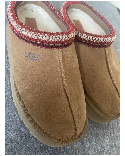 The UGG Tasman Chesnut women's boots in UK size 5 are a stylish and comfortable choice for casual occasions during the winter season. These slip-on boots feature a round toe shape, standard shoe width, and are made of suede material in a classic brown colour. The UGG Australia brand ensures quality and a timeless style, while the design is not customisable. Perfect for keeping your feet warm and chic in colder weather, these boots are a must-have for any woman's wardrobe.