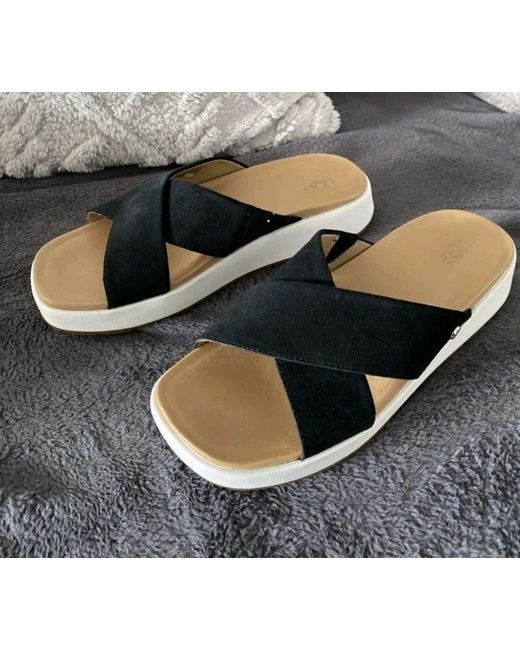 Womens Disco Cross Slide Suede Sheepskin Sandals Chestnut UK 6.