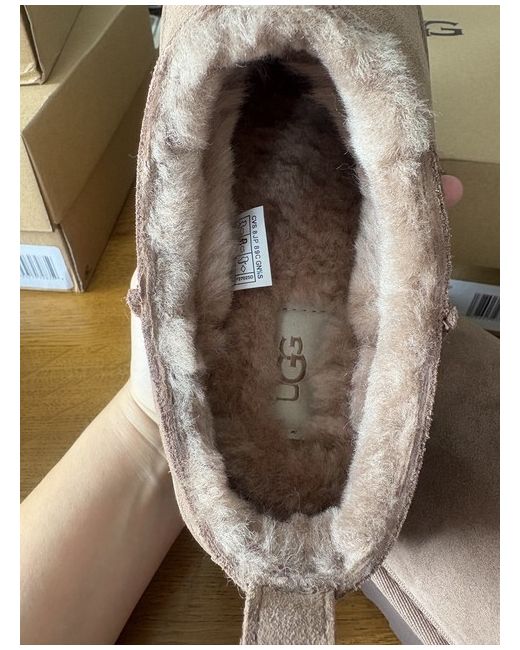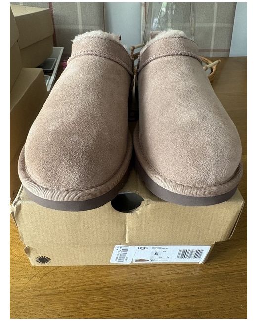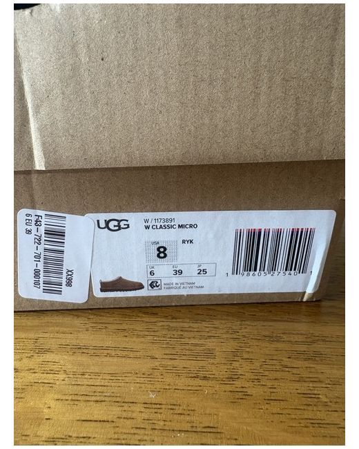 The Ugh Classic Micro Boot in Rocky Oak, size 6 UK, is a stylish and comfortable bootie perfect for casual occasions during the winter season. Made with sheepskin lining and a rubber outsole, these boots feature a classic round toe design with the signature UGG Australia logo accent. The brown suede upper material adds a touch of elegance to this timeless piece from the Ugg Classic product line. Perfect for women looking for a reliable and fashionable footwear option.