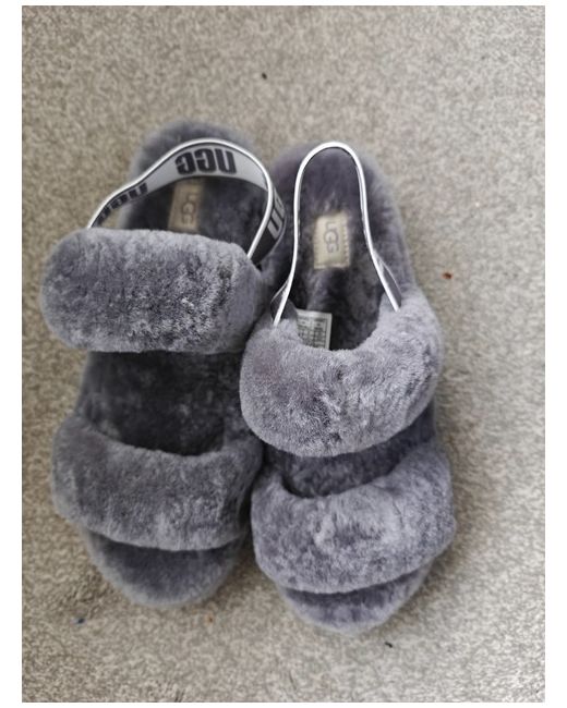 Oh Yeah Grey Sheepskin Fluffy Soft Strappy Slippers UK 7/EU 40 NEW
