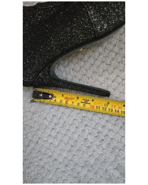 Style: Thigh-high stretch boots. ✨ These gorgeous boots are a real show-stopper – sleek, sparkly and elegant. They look amazing with dresses, skirts, or styled over skinny jeans. Size: UK 6.