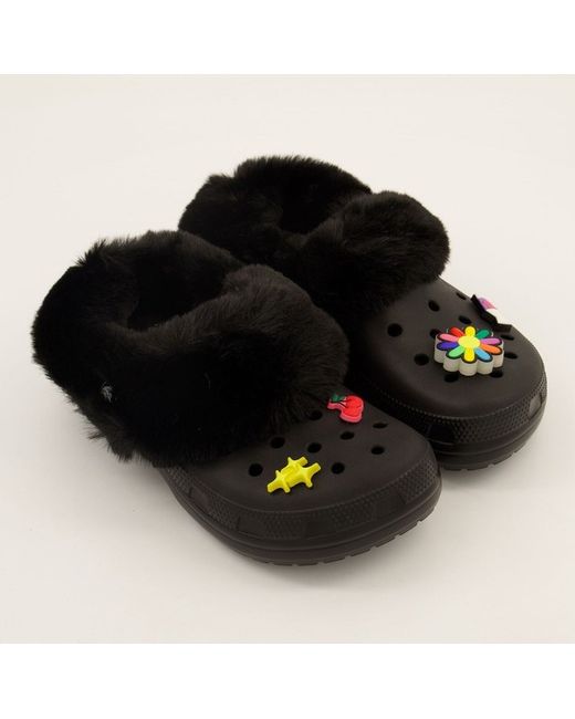Introducing the new size 5 Crocs Black Classic Mammoth Charm Clogs! These slip-on clogs are perfect for casual occasions during the summer season. The black synthetic material with the signature Crocs logo accents makes them a stylish and comfortable choice for women. The standard shoe width and easy slip-on closure add to the convenience of wearing these sandals. Add a touch of personality to your wardrobe with these popular Crocs clogs. Clogs Black Classic Mammoth style name Logo detail to side Slip-on Faux fur lining and trim Adjustable charms Upper: Textile. Inner: Textile. Sole: Synthetic