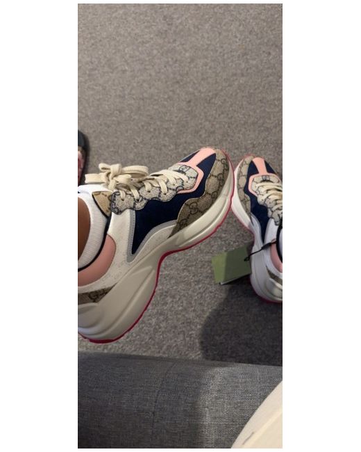 These Gucci Women Trainers in size 4.5 are a stylish and luxurious addition to any casual outfit. Made in Italy with leather lining and upper material, these lace-up trainers feature a classic white colour and rubber outsole for comfort and durability. The standard shoe width and leather insole material ensure a comfortable fit, while the rubber cleat type provides a secure grip. Add a touch of designer flair to your wardrobe with these on-trend Gucci sneakers.