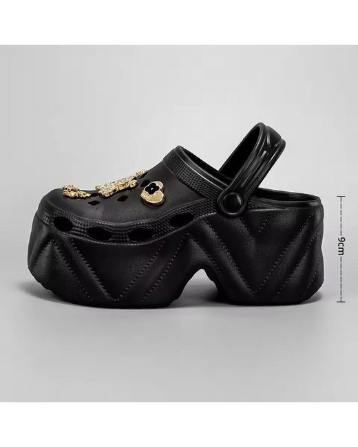 Fashion Chain Black and Bear High Heel Imitation Leather Pattern Clogs
