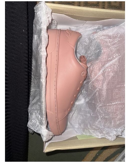The Ted Baker Aryah Leather Colour Drench Trainers in dusky pink are a stylish choice for women looking for a casual yet fashionable option. These lace-up sneakers are crafted from high-quality leather, making them durable for everyday wear. The dusky pink colour adds a touch of vibrancy to any outfit, perfect for the autumn, winter, spring, or summer seasons. With the Ted Baker brand known for its quality and design, these trainers are a trendy addition to any wardrobe.