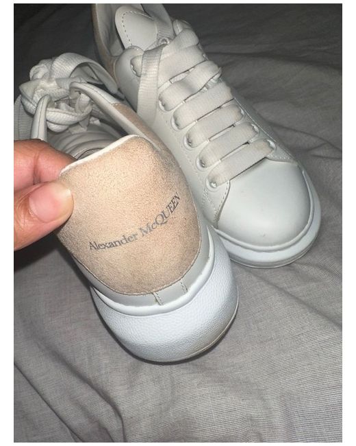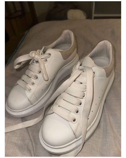 The Alexander McQueen shoes are a stylish pair of white leather trainers in UK size 3 (US size 5.5). Perfect for a party or cocktail occasion, these sneakers are customised to suit your individual style. Made in Italy, these shoes feature leather lining, insole, and upper material, ensuring both comfort and quality. With a sleek design and a focus on the brand's signature aesthetic, these Alexander McQueen shoes are a must-have for any fashion-forward woman looking to make a statement during the summer or spring seasons.